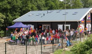 Dit gebouw was de oude muziekschool op Zonnestein. Door de inzet van 3 scouting groepen Radboud, Livingstone en Keizer Karel groep kon op 23 oktober 2010 de eerste paal de grond in voor ons nieuwe clubhuis aan de Doorweg 36. Op 2 Juli 2011 was de feestelijke opening van ons nieuwe onderkomen. Het was een lang proces en we zitten hier met alle tevredenheid al vanaf 2011 en hopen in. 2026 ons 90 jarig bestaan te mogen vieren.